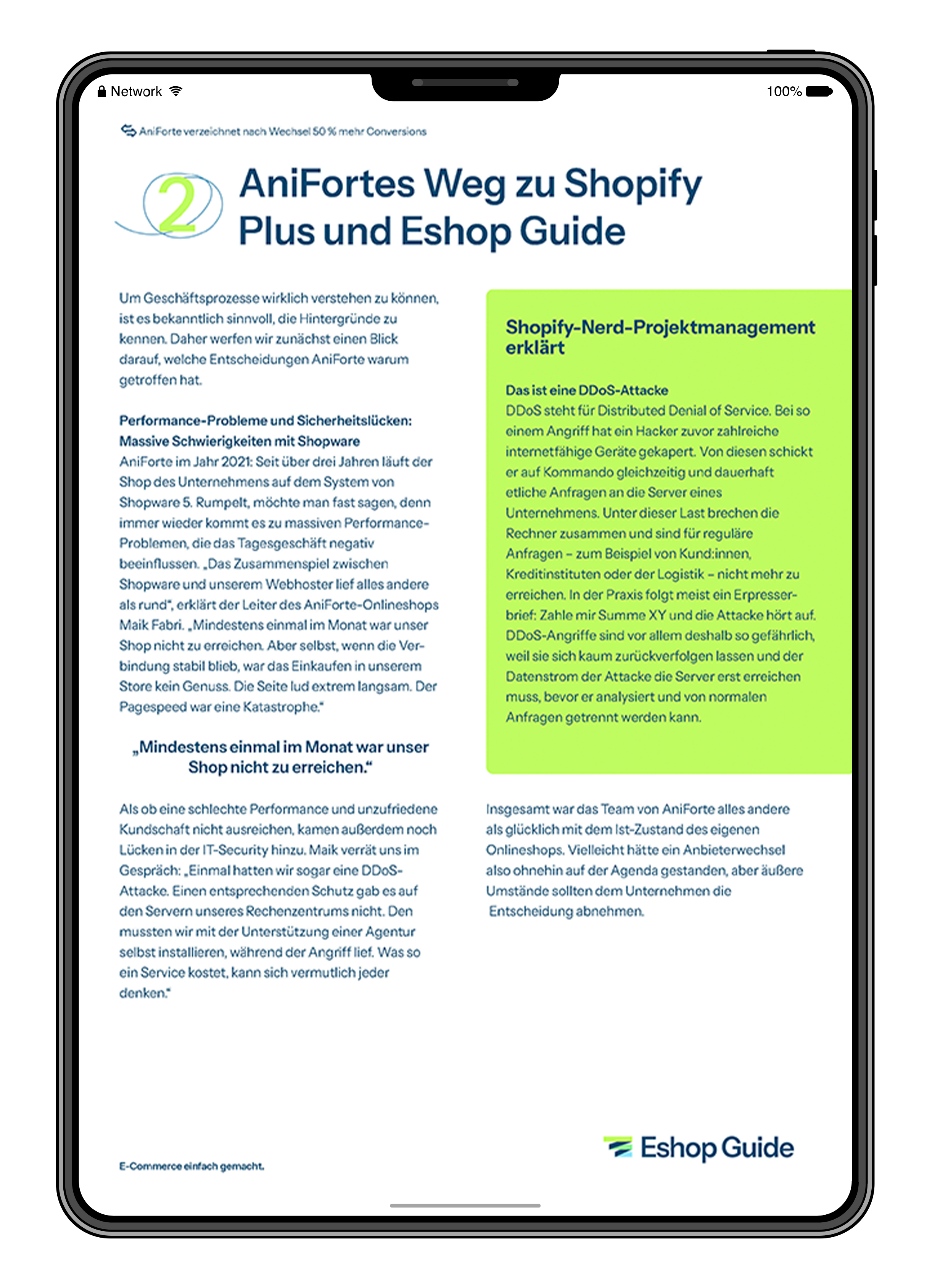machten das Einkaufserlebnis zur Geduldsprobe. Zusätzlich sorgten Sicherheitslücken wie eine DDoS-Attacke für interne Aufwände und Unsicherheiten bei den Kund:innen.